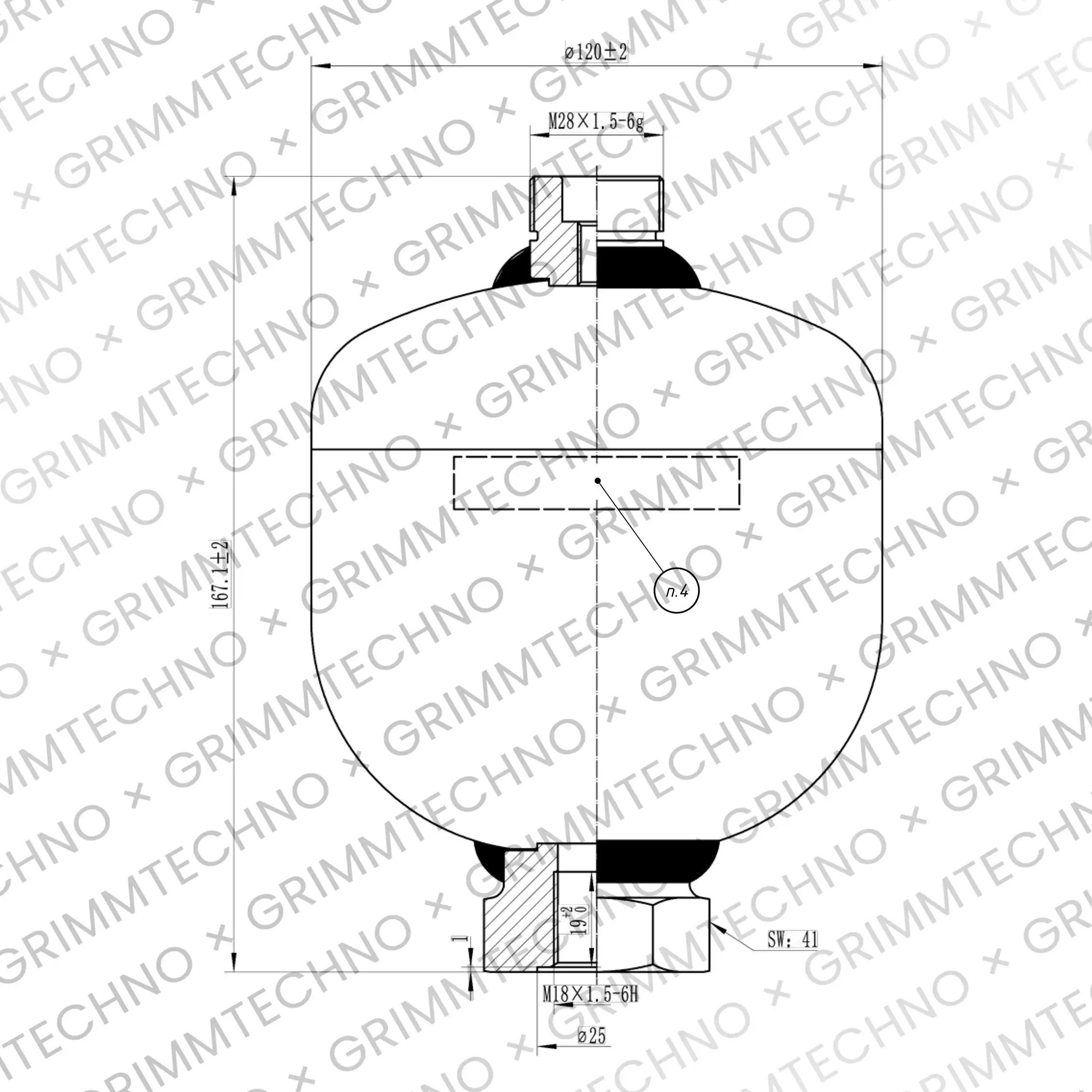 Номинальный объем: 0.75 л Макс. рабочее давление: 250 бар Давление зарядки азотом: 15 бар Резьба: М18х1,5 Температурный диапазон: от -40 до +120 °С