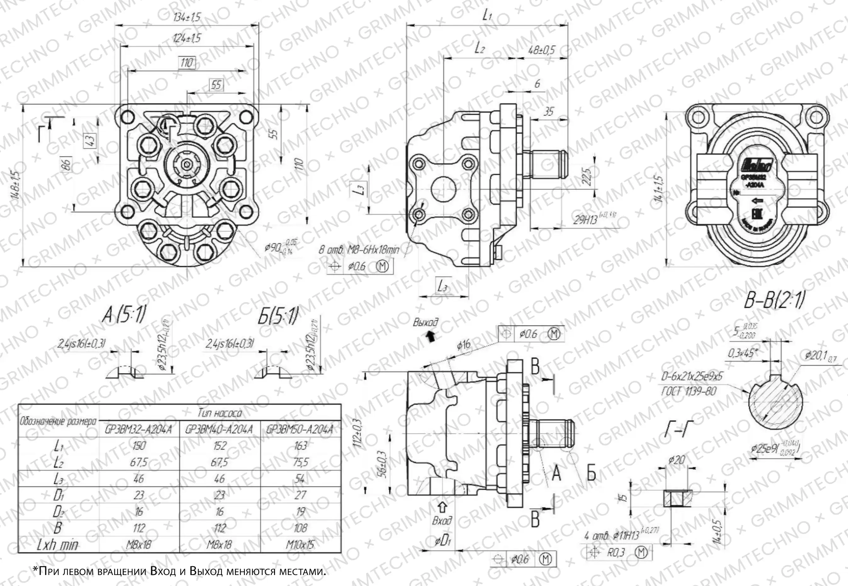 Гидронасос шестеренный НШ32М-3Л (GP3BM32L-A204A) левый