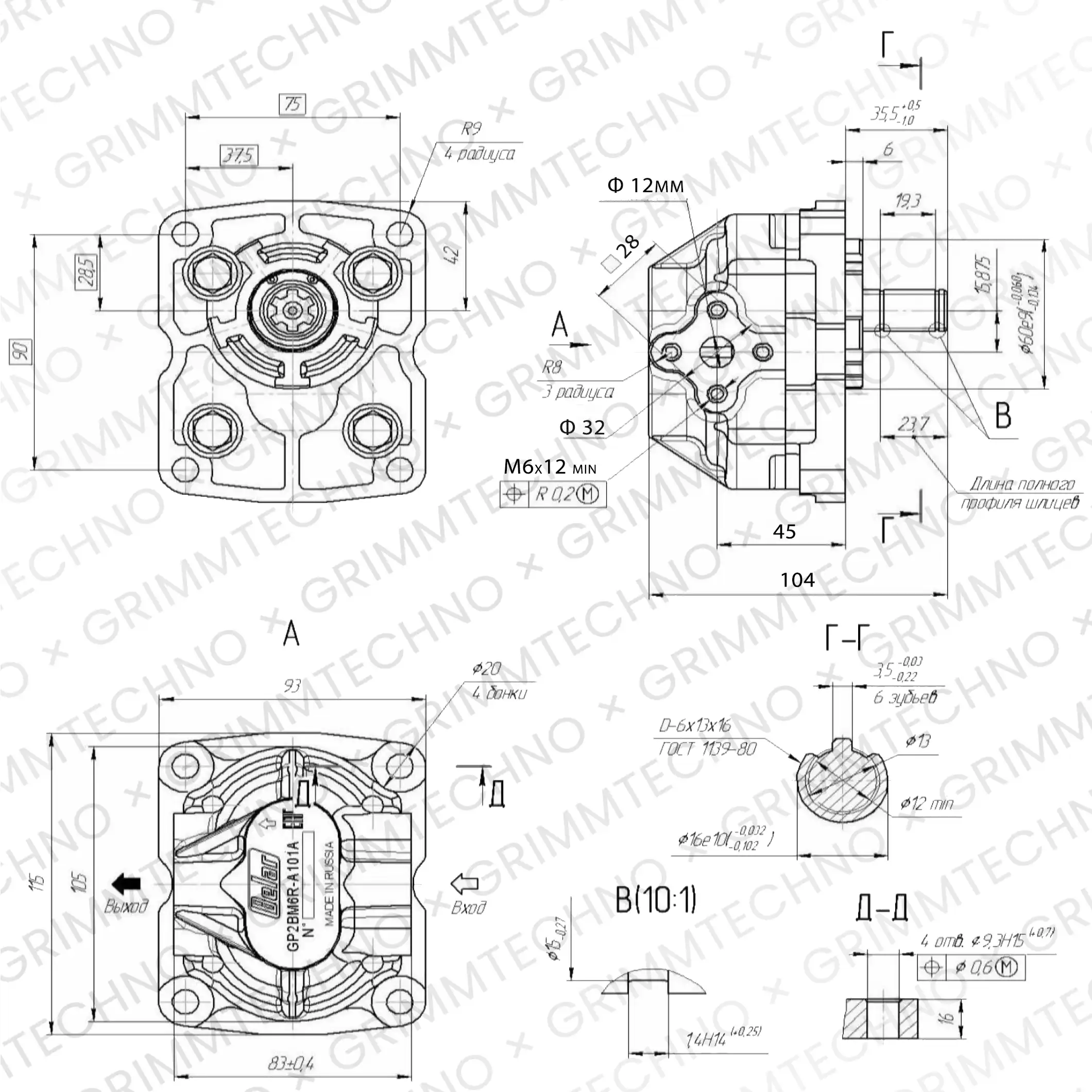 Гидронасос шестеренный НШ6М-3 (GP2BM6R-A101A) правый